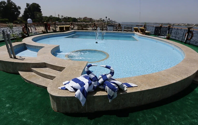 Designed with comfort and style, the cruise features spacious cabins and suites equipped with modern amenities such as air conditioning, private bathrooms, satellite TV, minibars, and Wi-Fi. On board, you'll find a restaurant, lounge, bar, swimming pool, spa, fitness center, and sundeck, providing the perfect spots to relax and enjoy the stunning views of the Nile.