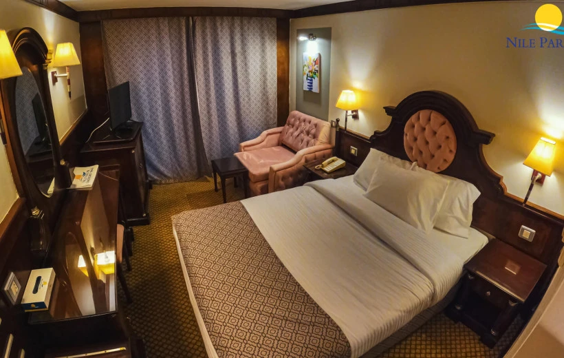 Indulge in contemporary and spacious accommodation, ensuring a relaxing retreat after days of exploration. On board, enjoy the finest exquisite restaurant serving Egyptian and international cuisine, relax at the lounge bar, dip in the swimming pool, pamper yourself at the spa, and enjoy stunning views of the Nile from the sundeck.